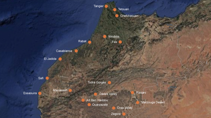 From coastal cities to imperial capitals, from the Atlas Mountains to the Sahara Desert, experience the full diversity of Morocco.