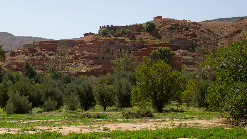 Arrival at the village of Timit, where you’ll be greeted with traditional mint tea and can stroll among local houses and fields.