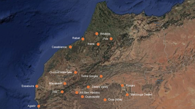 Tour starts in Casablanca and ends in Marrakech