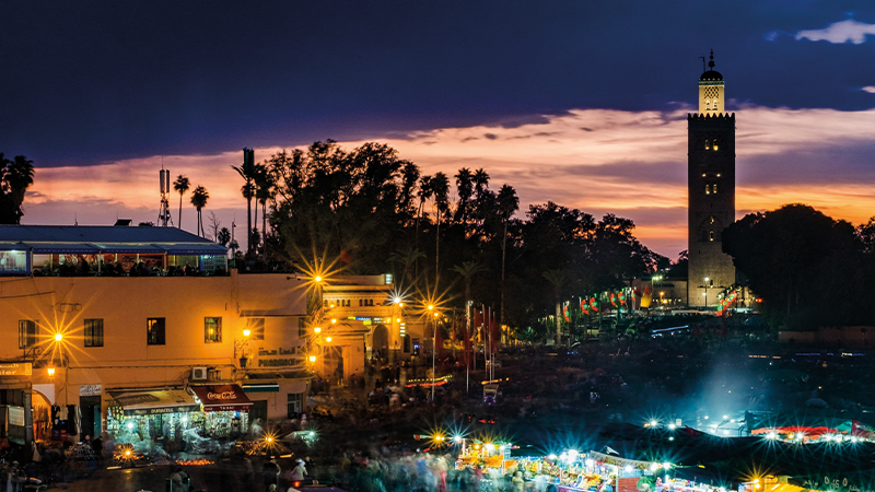 Koutoubia Mosque and Jemaa el-Fna: After lunch, visit the historical Koutoubia Mosque, an iconic landmark of Marrakech known for its impressive minaret and beautiful architecture.