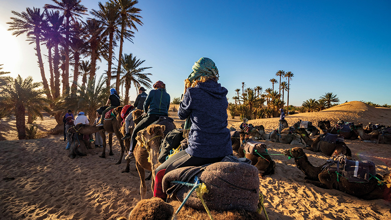 Worn in traditional Berber attire. You will feel a true connection to Morocco’s rich cultural heritage during your camel ride. With the rhythmic sway of your camel’s gait. You will then explore the sunny paths of the palm groves. Immerse yourself in the natural beauty and tranquility of the desert landscape.
